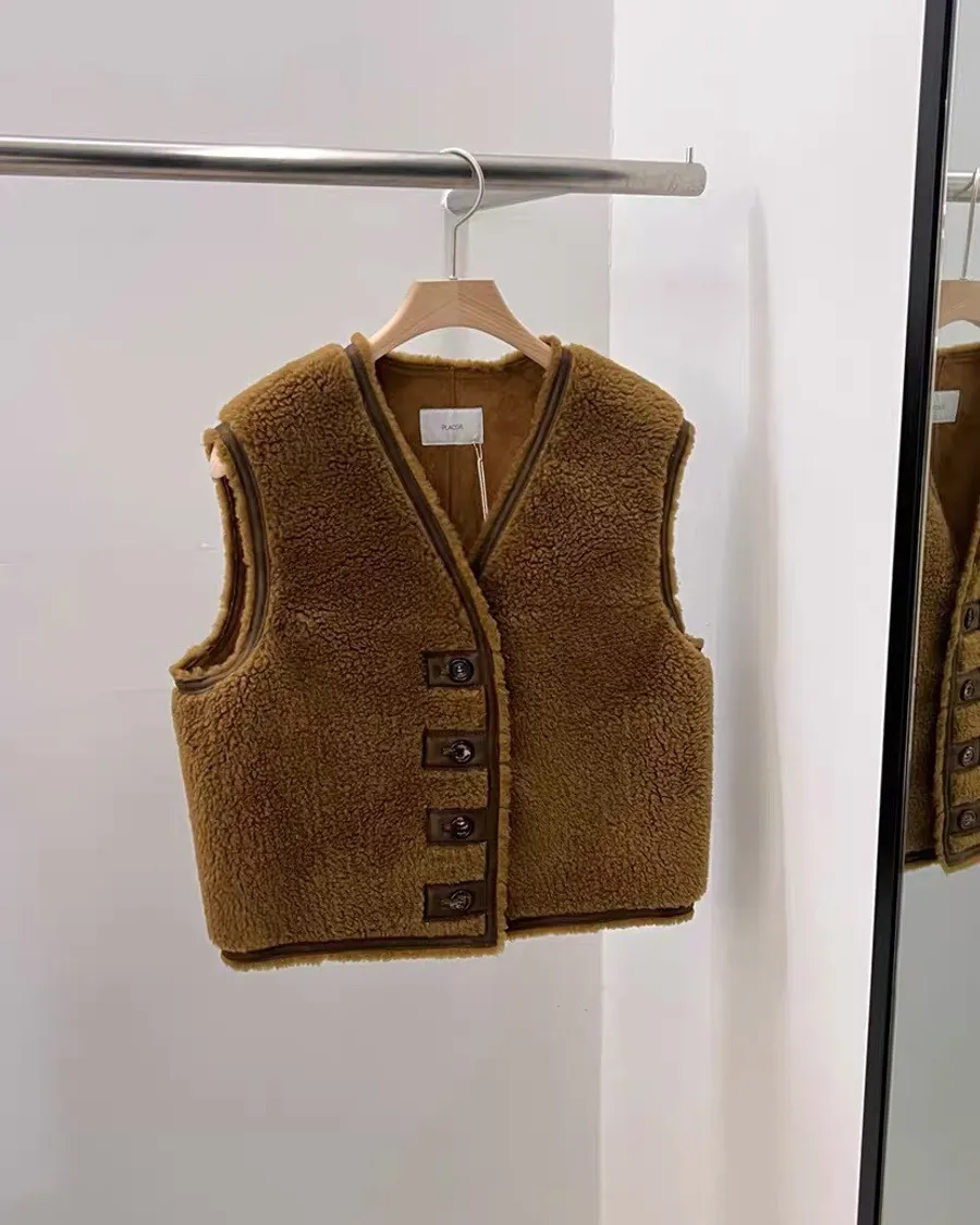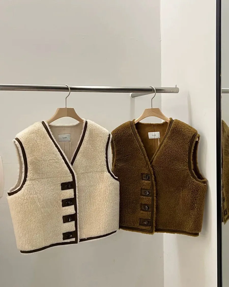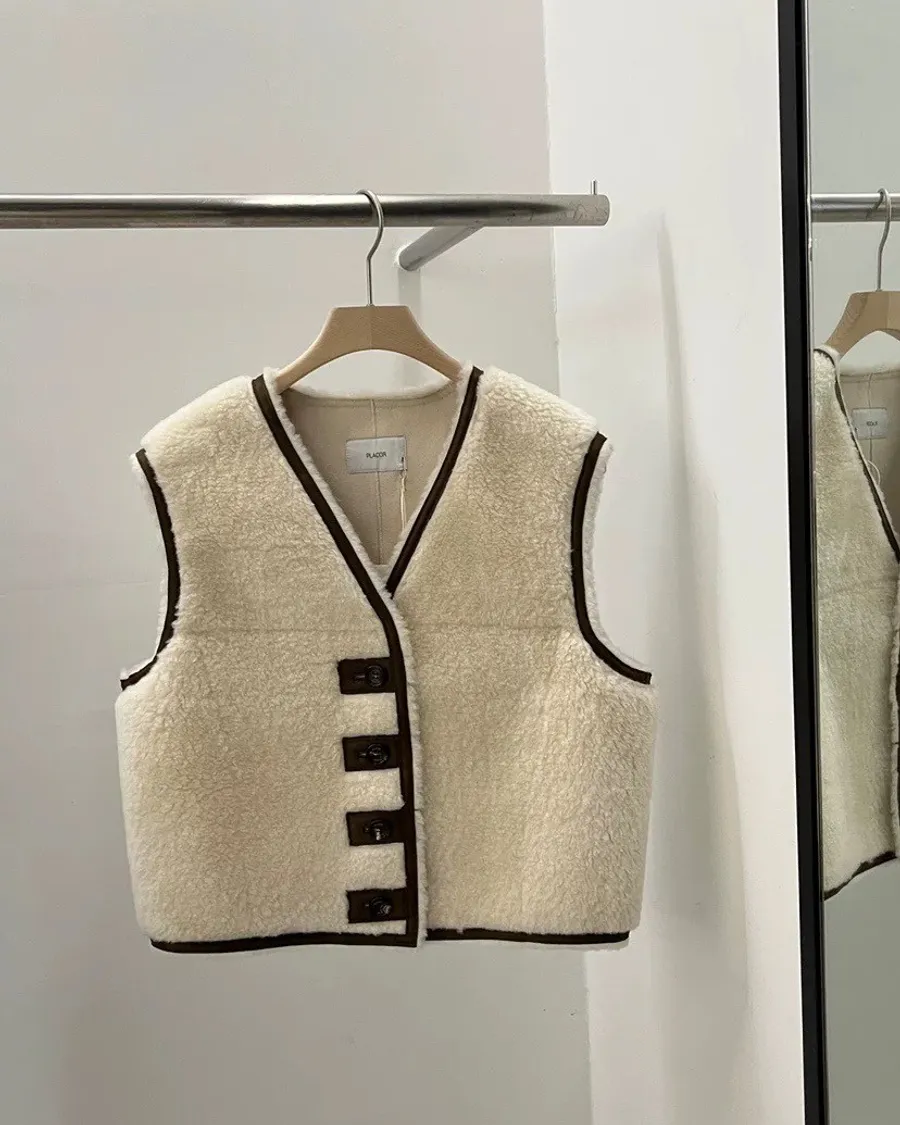 R023 可愛羊毛皮質背心
