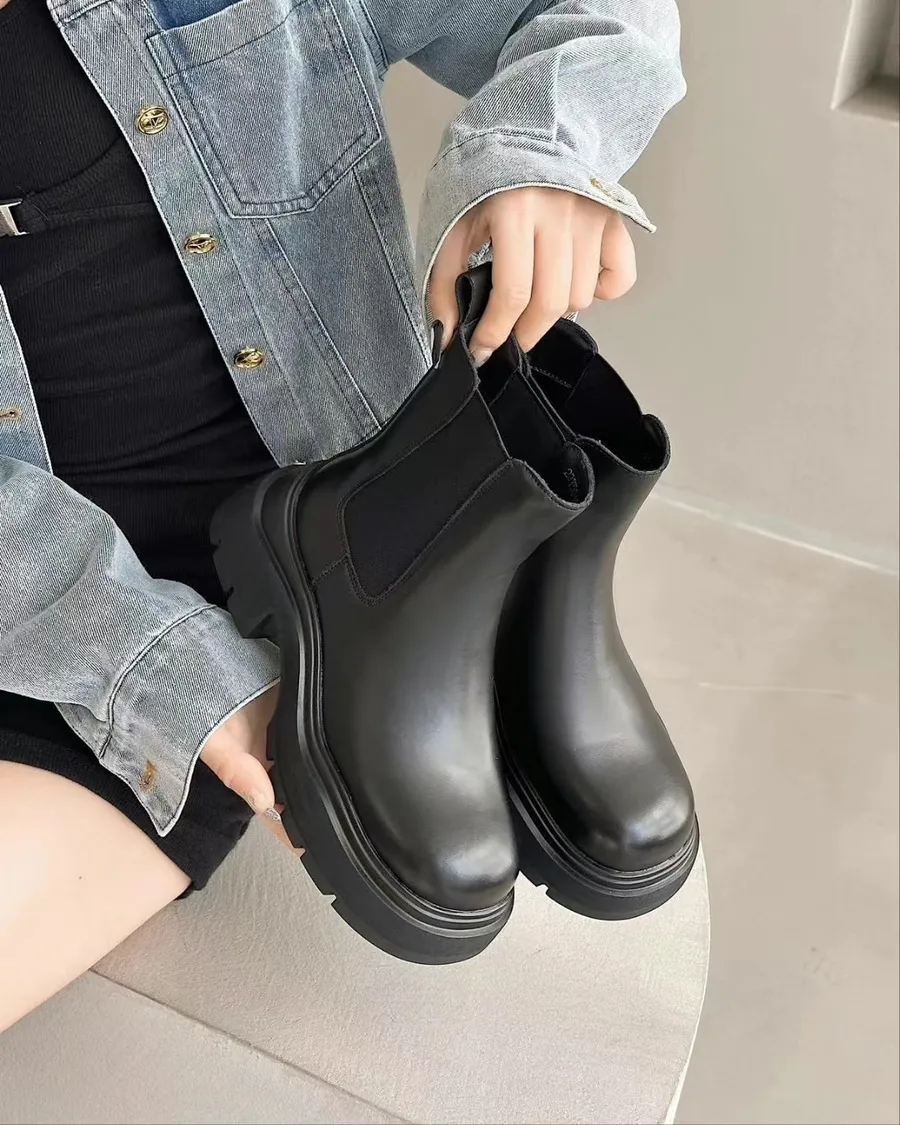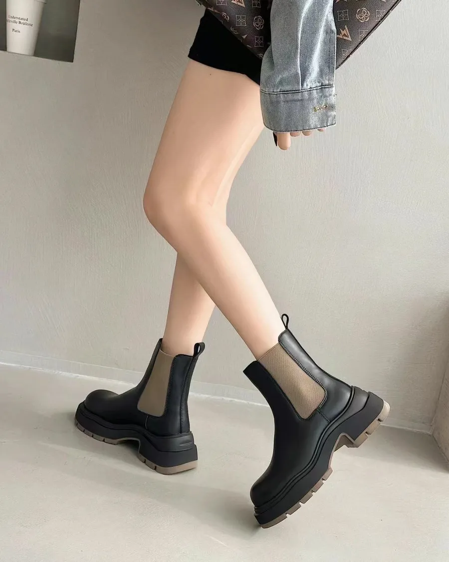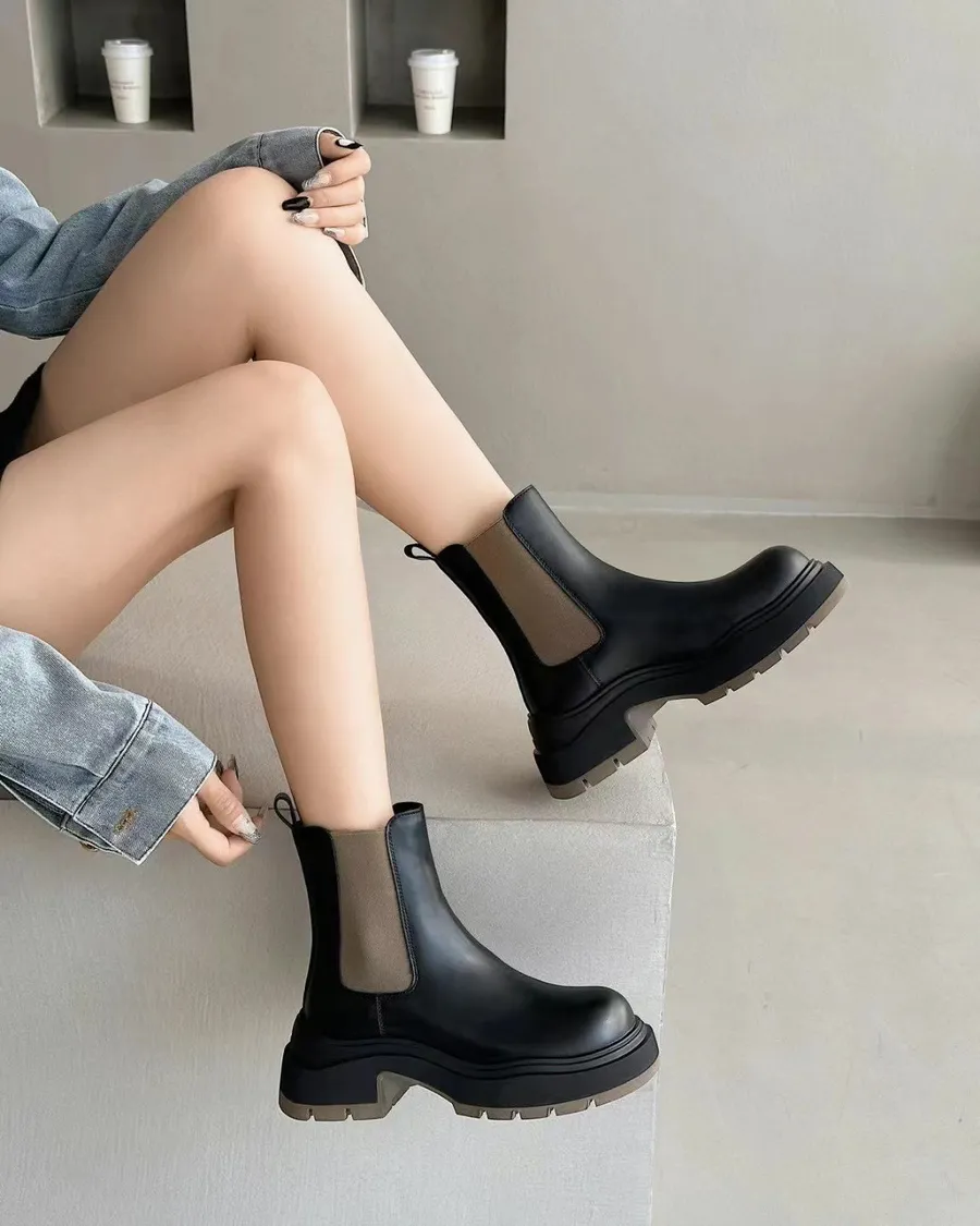 R030 牛皮厚底切爾西靴