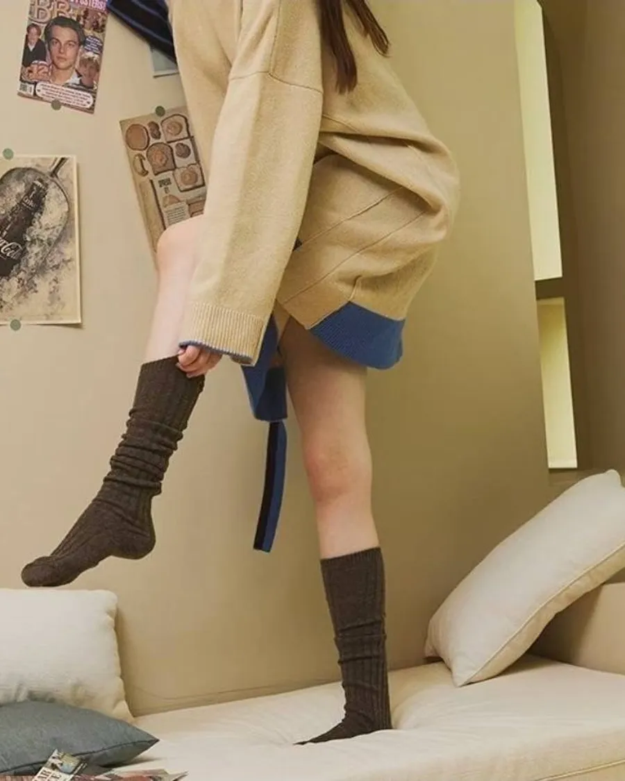 R038 韓國製坑條紋羊毛長襪