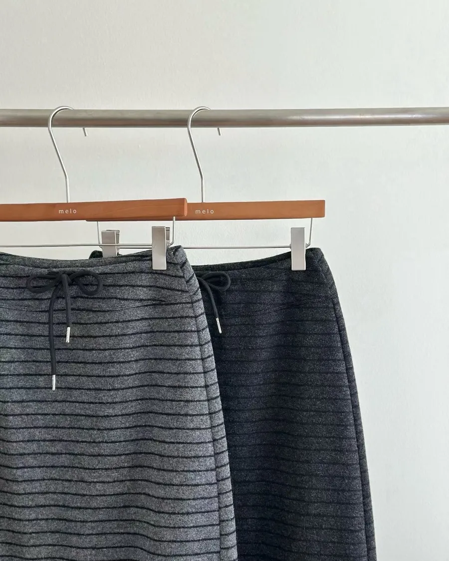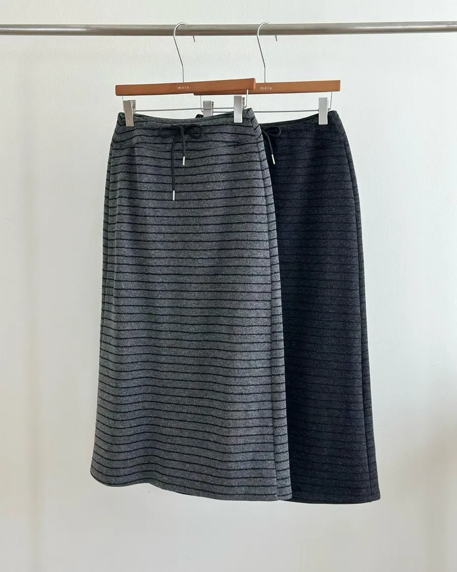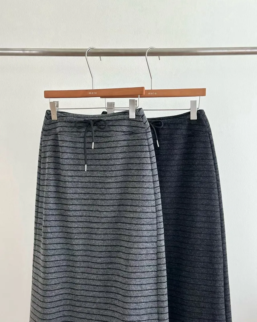 R046 抽繩條紋毛料長裙